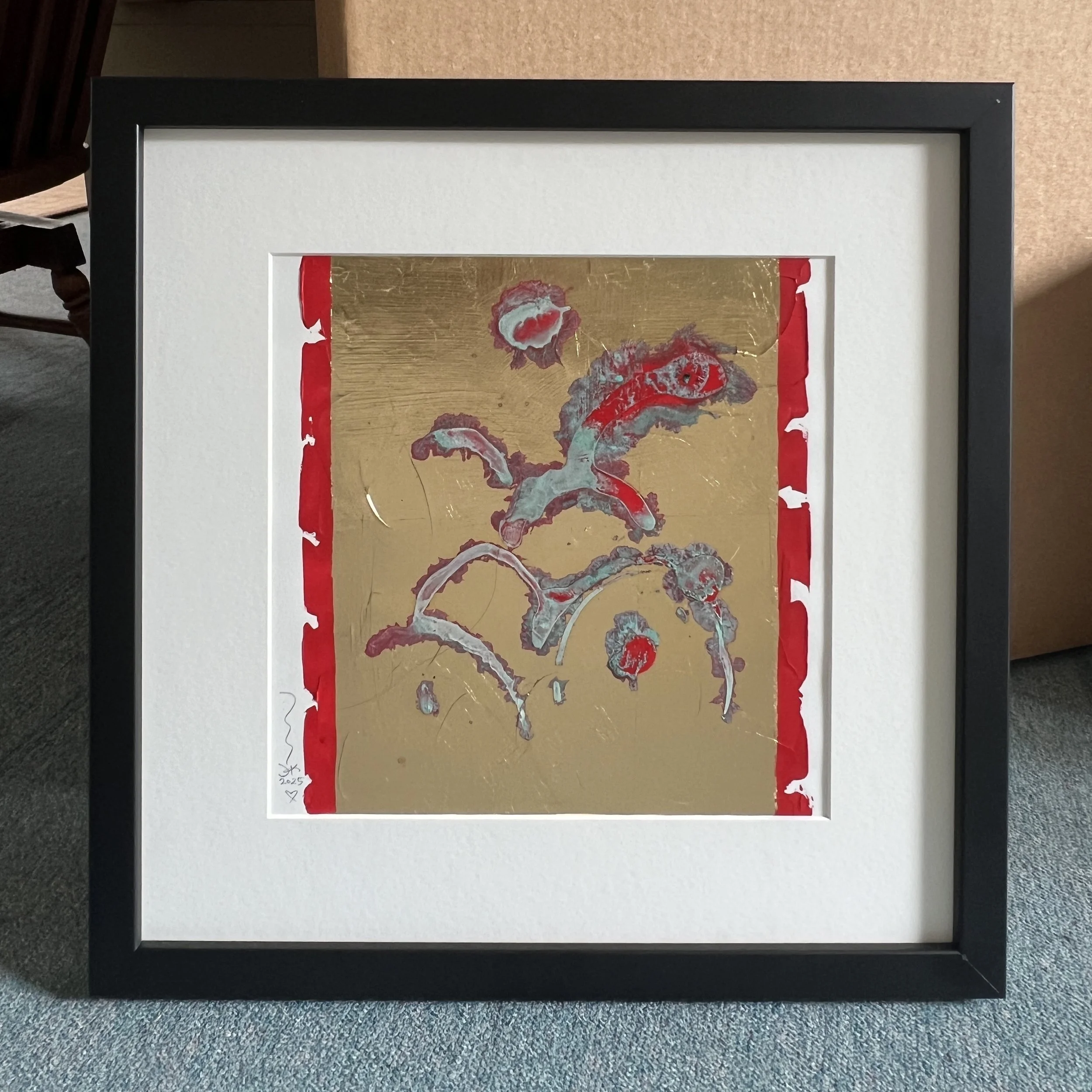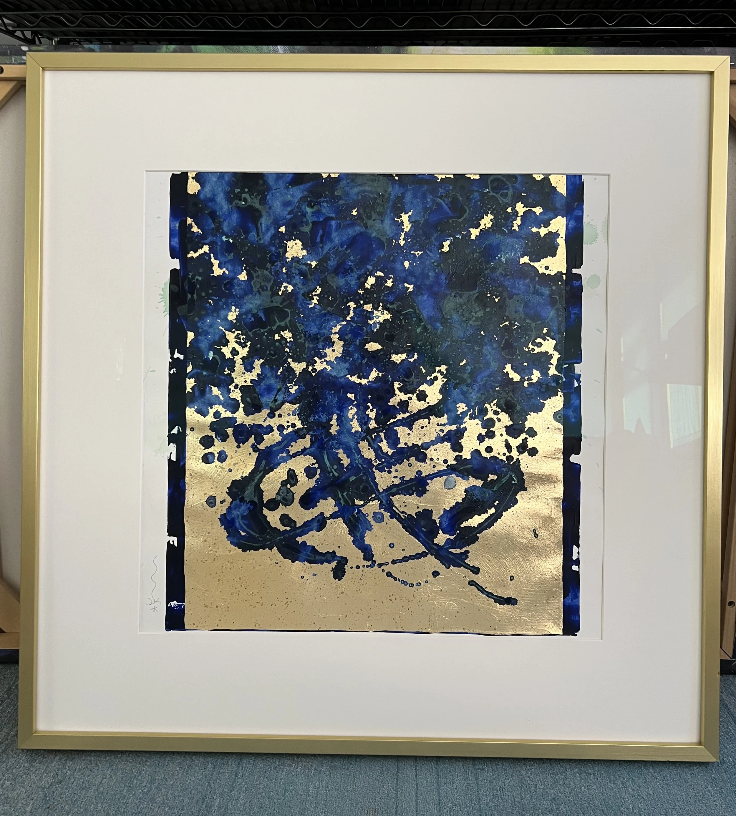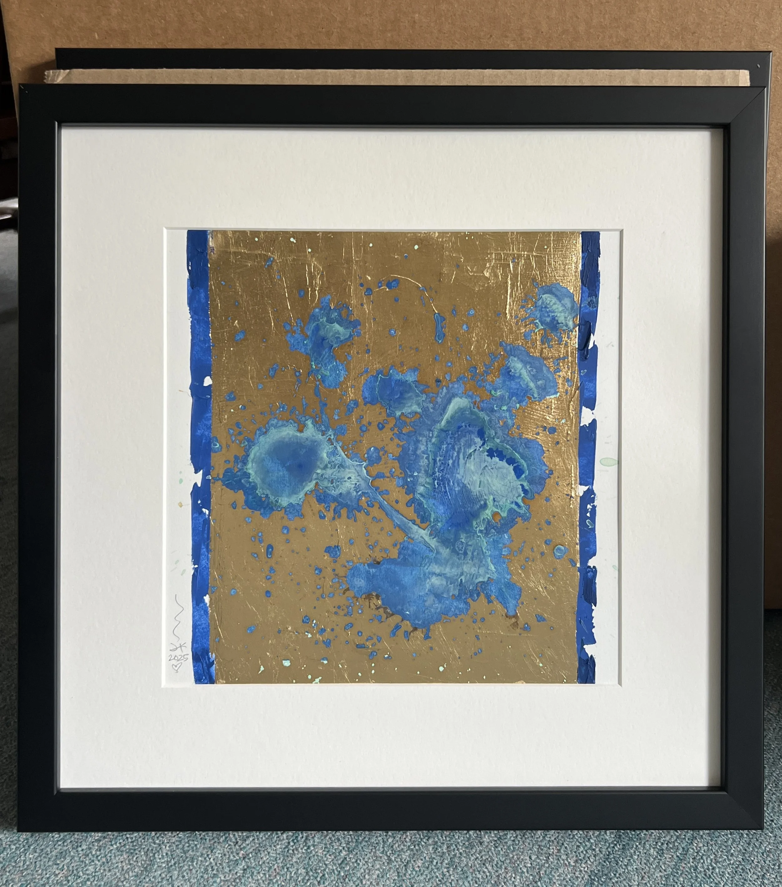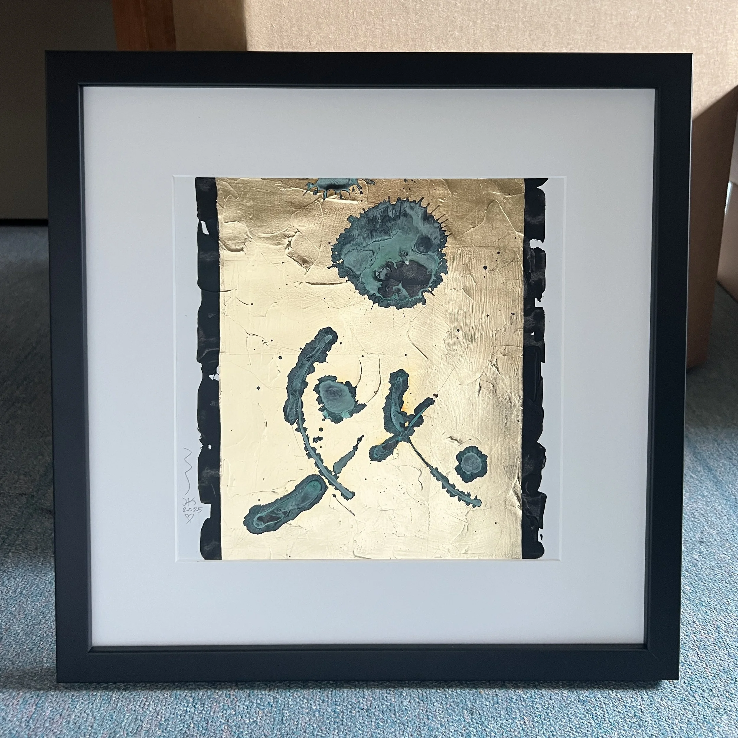 In this series, Jennifer took elements from her contemporary landscape paintings, broke them out of their mold, and remodeled them with simplification and distortion. Texture, mark making, and decisive use of color are all drawn upon to express nature themes. Each background is an expression of a single landscape element: a leaf, a blossom, the earth, a tree. A light-reflecting gilded area is patinated with lyrical lines and splashes, allowing the color to show within and around its regular, straight edge form. These works evolve over time, taking about one year to fully develop a halo around the etched areas of gilding. The combined effects of these paintings refer to the tempests, fast and slow, of nature changing and evolving over just a few generations of human life.